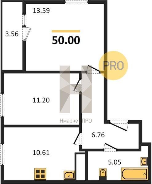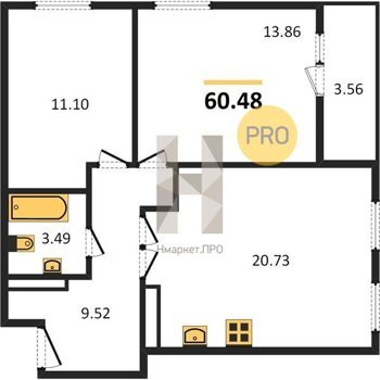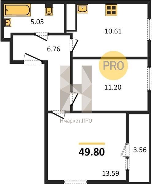Площадь от 49.6 м2