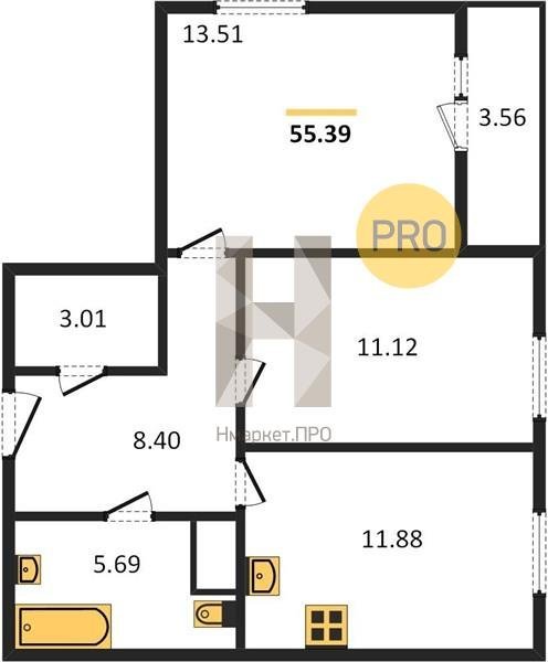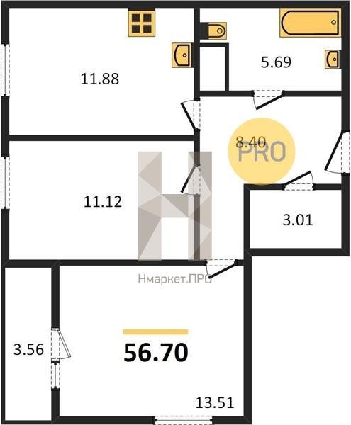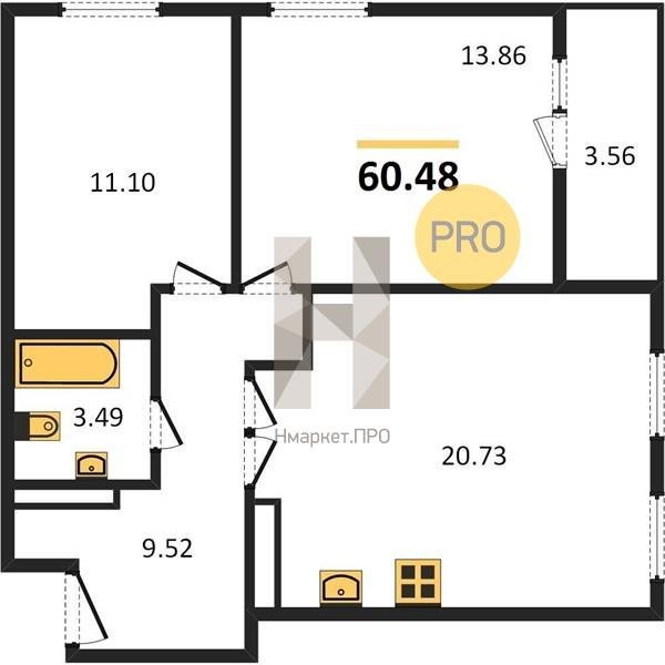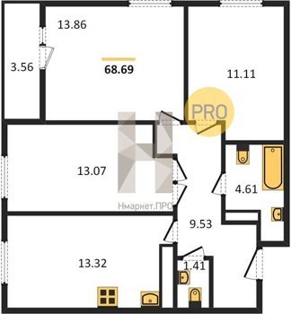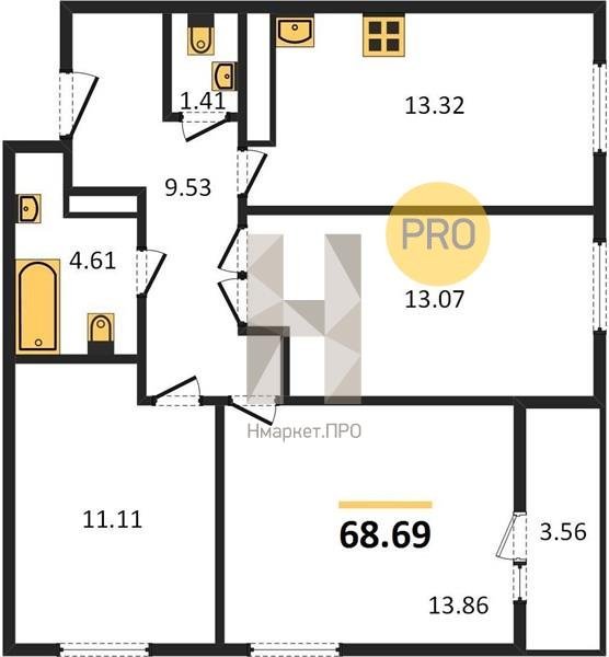 Площадь от 68.69 м2